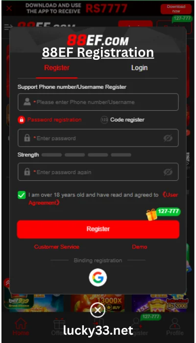 The fast download APK 88EF Registration uses OTP codes for login security. Your password stays encrypted. Nobody can access your account without your phone. You can play 24/7 from anywhere with internet.